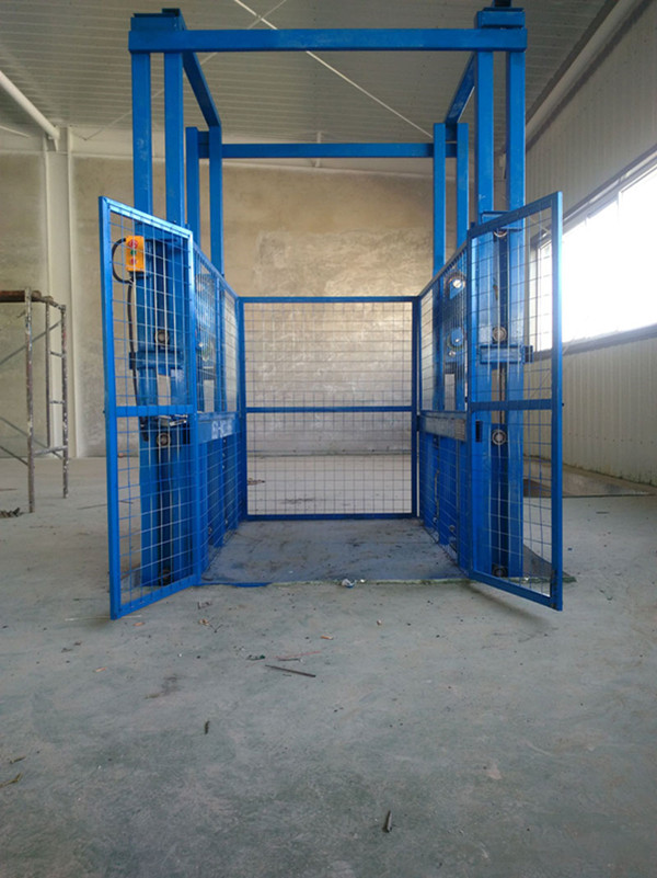 導軌式升降機是貨梯。導軌式升降機也可加裝電動門。在升降機到達指定樓層后電動門可以自行打開,電動門在打開狀態(tài)下升降機停止上下升降運行,保證操作者使用時的安全。當然也可以不加裝電動門,因為每層的控制按鈕都配有應急按鈕開關,在向升降機上裝卸貨物時可關閉應急開關,臨時停止液壓升降機的升降運行,以免有其他人員在別的樓層升降載貨臺面,從而保證使用者的安全。